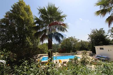 La villa si sviluppa su un unico livello, su un lotto di circa 5.000 mq, con un fabbricato di circa 158 mq, 7 vani, oltre giardino, piscina e terreno.