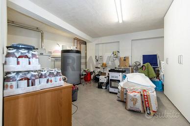 La proprietà è accessibile tramite ingresso indipendente, servito da un ampio parcheggio. Al piano terra troviamo un garage di circa 100 mq e un locale tecnico che ospita la caldaia a pellet.
