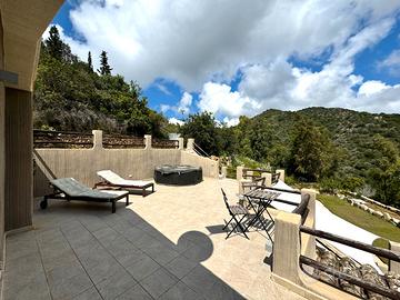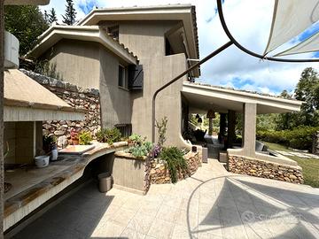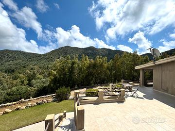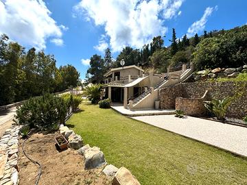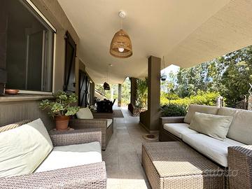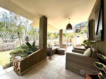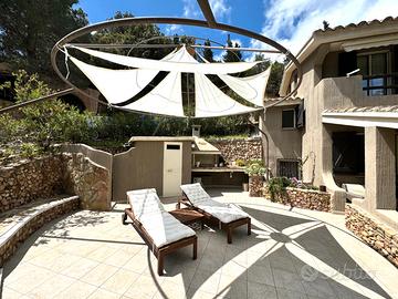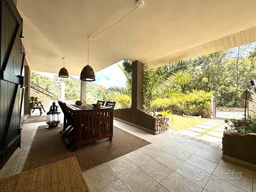 VILLASIMIUS - In località Punta Molentis, perla incantevole della costa di Villasimius, villa singola ristrutturata con ampi spazi esterni. Accessibile tramite cancello automatico, la proprietà è circondata da muretti a secco e siepi e dispone di doppio ingresso (pedonale e carrabile). Gli spazi esterni sono ampi e ben organizzati: veranda coperta arredata con divani in vimini e zona pranzo, area lastricata con barbecue, ripostiglio e doccia esterna, oltre a giardino curato con prato all'inglese, piante ornamentali e ghiaia bianca. All'interno, accogliente e luminosa zona giorno con camino in pietra, area relax con TV e zona pranzo. La cucina, situata su un livello leggermente inferiore, è completa di elettrodomestici. Al piano terra, separati da porta scorrevole, si trovano due ambienti finestrati collegati tra loro, adibiti a camera e bagno. Una scala interna conduce al piano superiore dove si sviluppa l'ampia camera matrimoniale con cabina armadio a vista, accesso a veranda privata e allo splendido solarium con vasca idromassaggio, raggiungibile anche da scala esterna. La casa si presenta in ottimo stato manutentivo ed è dotata di climatizzazione, pozzo artesiano privato, pannello solare termico e connessione internet satellitare. Soluzione ideale per chi desidera vivere o trascorrere le vacanze in un contesto riservato, immerso nella natura, senza rinunciare ai comfort moderni.