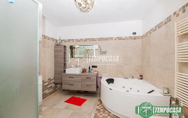 Ingresso da strada con cancello elettrico ed accesso sul giardino privato della soluzione abitativa; deor d'ingresso chiuso per evitare che il freddo batta direttamente sulla porta d'ingresso. Port blindata che ci da accesso al piano terra dove troviamo: ampio soggiorno con cucina abitabile, il tutto caratterizzato da porte finestre che ci da accesso al giardino e da finestre che ci consentono di avere un ottima illuminazione; bagno al piano terra finestrato con box doccia; camera matrimoniale di oltre 20 MQ con porta finestra direttamente sul giardino e caratterizzata da una cabina armadio di ottime dimensioni ed un bagno padronale direttamente in camera con vasca da bagno idromassaggio e box doccia. Dal soggiorno, tramite un corpo distaccato dove vi è il vano scale a pianta circolare, accediamo al piano superiore dove troviamo la zona notte caratterizzata da tre camere da letto, ognuna di queste con bagno privato in camera, di cui una anche con balcone privato.