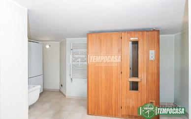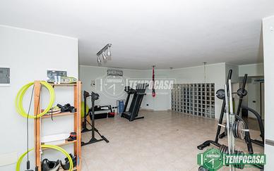 Dal piano terra accediamo anche al piano inferiore dove troviamo una zona taverna ben distribuita e divisa in questo modo: locale lavanderia con sauna, ampia zona taverna utilizzata a palestra ed un'altro ambiente utilizzato a sala studio musica.
