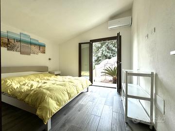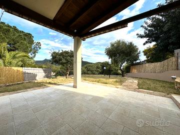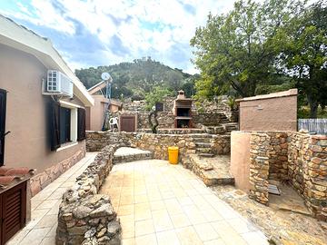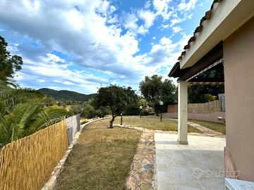 VILLASIMIUS - In località Nuraghe Giardone, a 500 metri dalla splendida spiaggia di Campus, villa singola appena ristrutturata e con ampio giardino. Dotata di doppio ingresso, sia carrabile che pedonale, attraverso una breve scalinata che costeggia il cortile terrazzato, si raggiunge la parte del giardino antistante l'immobile, da cui si può ammirare un primo scorcio di mare. Su questo spazio, ben curato e dotato di irrigazione automatica, affaccia la comoda veranda coperta, ideale per godersi le calde giornate estive al riparo dal sole diretto. Varcata la soglia d'ingresso, si viene accolti da una luminosa zona giorno open-space in cui trovano spazio una parete cottura ad angolo, il tavolo da pranzo e il divano, e uno splendido camino perfettamente funzionante che rende l'ambiente ancora più accogliente, soprattutto nella stagione più fredda. Qualche gradino a salire e si raggiunge la seconda ala della casa, che si sviluppa intorno a un comodo andito che separa gli ingressi di tutti gli ambienti che la compongono. Disposte una di seguito all'altra le tre comode camere da letto, di cui due dotate di ingresso indipendente dall'esterno, e lo splendido bagno finestrato con doccia di generose dimensioni. Il giardino della proprietà prosegue sul retro dell'immobile, in cui trovano spazio due comodi ripostigli, un barbecue, una doccia esterna e un ingresso carrabile che consente il comodo posteggio di due auto. Gli spazi retrostanti l'immobile, essendo rialzati rispetto allo stesso, permettono di godere di una buona panoramicità, il che li rende ideali per la realizzazione di una zona relax vista mare. L'immobile si presenta in ottimo stato manutentivo, è completamente climatizzato e dotato di pannello solare termico. La soluzione si consiglia in particolar modo a chi desidera raggiungere la spiaggia con una breve passeggiata; gli importanti spazi interni, inoltre, ne fanno un'ottima soluzione anche per chi ama prendersi cura del proprio giardino.