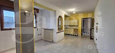 Il piano terra è occupato da un appartamento con soggiorno, angolo cottura, un disimpegno, una camera, un bagno e una lavanderia/ripostiglio. E' collegato al piano superiore da una scala interna e al laboratorio.
