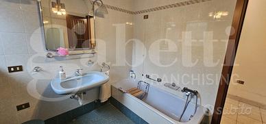 La villa è composta da due appartamenti con laboratorio, 3 box singoli, locale ripostiglio, cantina e ampio giardino curato.