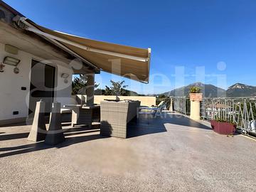 Il grande terrazzo panoramico è un valore aggiunto unico: uno spazio dove rilassarsi, organizzare cene all'aperto o semplicemente godersi la vista sulle montagne circostanti. Dotato di una pratica doccia esterna, diventa il luogo i