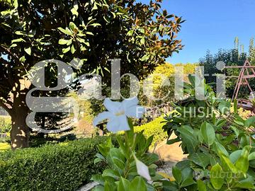 Circondata da un ampio giardino perfettamente curato, questa proprietà offre spazi esterni che invitano al relax e alla convivialità. Il prato verde, i fiori e gli alberi creano un'atmosfera di pace, mentre l'area barbecue e il patio arredato con gusto rendono ogni momento all'aperto speciale. Inoltre, i pannelli solari installati garantiscono un'abitazione sostenibile ed efficiente.