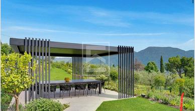 Il design della villa nasce dai più moderni concetti eco-sostenibili classe energetica A4: gli spazi interni si fondono in piena continuità con gli oltre 7.000 mq di giardino mediterraneo e un romantico uliveto, dove terrazze e verande molto grandi si affacciano sul lago e sui tramonti.