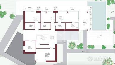 Superficie abitabile interna di 550 mq: 7 camere ognuna con cabina armadio e bagno, appartamento servitu', SPA, palestra, depositi, lavanderia, spazioso garage per ospitare molte auto.