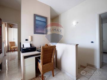 Saliamo le scale e da un disimpegno si dislocano due camere da letto matrimoniali ed un altro bagno, il tutto con un affaccio strepitoso su un terrazzo a livello, fronte mare.