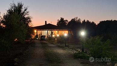 L'abitazione è composta da un'ampia zona giorno (cucina e salone) con camino in pietra, studio, camera matrimoniale con bagno privato, due camere da letto singole, disimpegno adibito a lavanderia, bagno con doccia e vasca, vano tecnico. Adiacente alla casa c'è anche un ricovero attrezzi di circa 65 mq costruito solo in parte. Ideale per chi in futuro avesse intenzione di costruire una cucina rustica, una piccola depandance o semplicemente un garage. Completa la proprietà un'area esterna di circa 4000 mq.