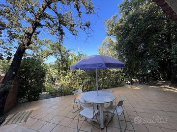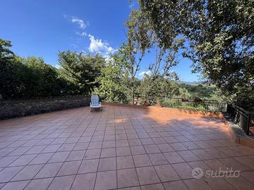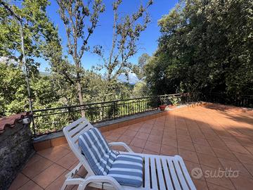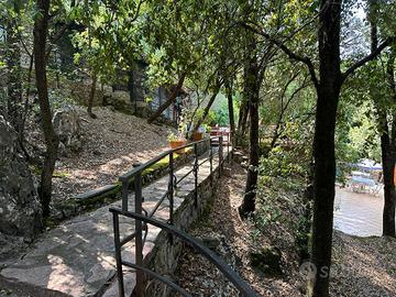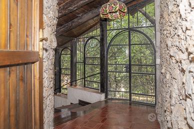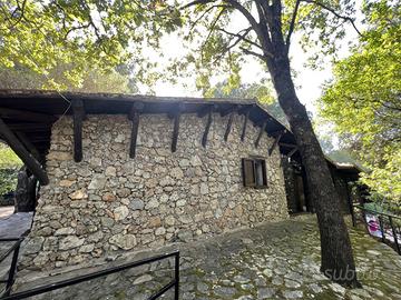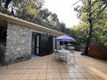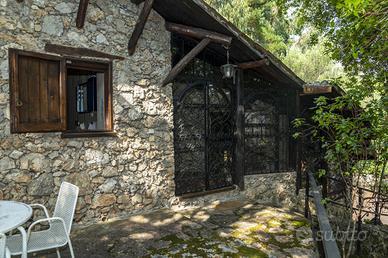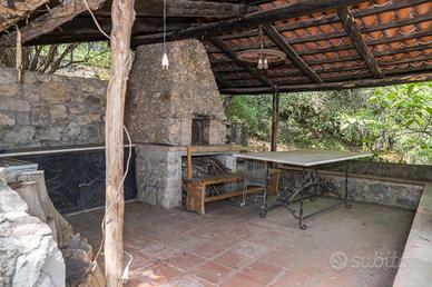 In ottima posizione a ridosso del centro di Scario, raggiungibile a piedi, singolare villa in stile casale completamente rivestita in pietra viva, molto riservata e fresca d'estate, immersa in un rigoglioso giardino alberato di mq.3.360 con ampio terrazzo a livello, ideale per feste con amici, accessoriato con tettoia in cui sono presenti forno a legna e barbecue e annessa dependance di 45 mq. La villa si sviluppa su due livelli e dispone di doppio ingresso, internamente risulta composta al piano terra da un ingresso, soggiorno con camino in pietra e soppalco in legno ed infine un cucinino che affaccia sull'ampio terrazzo; una particolare scala interna chiusa da vetrate e decorazioni in ferro conduce al piano primo con ingresso indipendente dall'esterno, corridoio in cui sono presenti le tre camere da letto matrimoniali di cui una con bagno privato ed un ulteriore bagno. Tutta la villa presenta le caratteristiche tipiche di un vecchio casale con pareti in pietra viva e travi in legno. Conclude la proprietà una dependance con cancello autonomo, poco discosta dalla villa, costituita da un soggiorno con angolo cottura, una camera da letto matrimoniale ed un bagno con antistante terrazzo a livello con angolo doccia. L'intera proprietà è circondata dalla strada che porta alla nota zona residenziale di Marcaneto con tre cancelli carrabili e area parcheggio interna con viali lastricati in pietra, angolo doccia e tettoia per posti auto coperti.