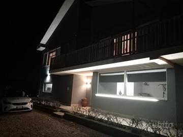 Vendesi villa di 280 mq completamente arredata e abitabile da subito inserita in una proprietà di 1000 mq di cortile e prato con irrigazione automatica, barbecue, patio per tavoli sedie sdrai ombrelloni o gazebo. La recinzione e' di proprietà e per accedere vi e' un vialetto completamente piantumato e illuminato comprensivo di cancello automatico. La casa si sviluppa su due livelli dove al piano terra troviamo ampia autorimesse per due / tre autovetture a seconda delle dimensioni e si accede tramite porta sezionale automatica o porta ingresso principale. Sempre al piano terra suddiviso da autorimessa zona palestra con vasca piscina acqua/sale e zona relax con termostufa acqua / aria a pellet e scala ingresso al piano sopra. Al primo piano ampio salone e cucina open space + camera da letto con cabina armadio ed un bagno doppio con doccia e zona lavanderia. Tutto il piano e completamente arredato climatizzato e riscaldato . Il pavimento e tutto completamente in marmo, la cucina in muratura come anche il bagno. Nel piano si trovano ampi terrazzi con vista a 360 gradi. In cucina si trova un scala a giorno che raggiunge ultimo piano mansarda dove anch'esso e climatizzato e riscaldato open space pavimento tutto completamente in parquet, dove vi e' predisposizione per realizzare 2/3 camere da letto, attualmente una sola. Completa la zona mansarda un bagno / lavanderia con doccia e tre lucernari. Tutta la proprietà e video sorvegliata e comprensiva di antifurto interno e d esterno, pompe di calore caldo freddo, illuminazione perimetrale, locale caldaia esterno, doppio tetto coibentato e ventilato, totale cappotto esterno. No agenzie o intermediari