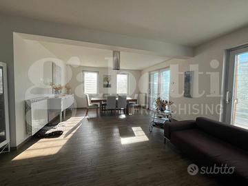 Al piano primo è composta da ingresso su zona living con cucina a vista e CAMINO, ampio TERRAZZO, 3 camere da letto e bagno.