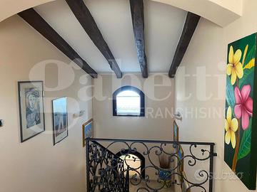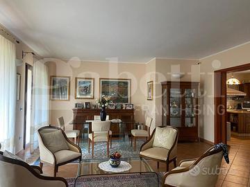 Internamente si compone di spazioso living che si affaccia su una veranda coperta di oltre 20 mq, una comoda cucina abitabile con separata dispensa, tre camere da letto di cui una con cabina armadio e bagno in camera e un pratico studio.