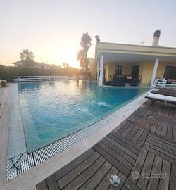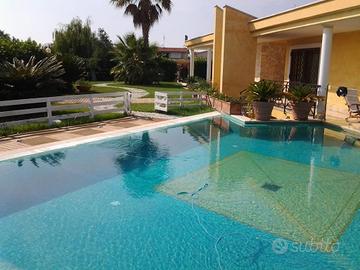 SANTA MARINELLA - nell'elegante quartiere di Prato del Mare, l'agenzia Grimaldi San Pietro propone la vendita di una lussuosa villa unifamiliare a pochi passi dal mare. L'immobile è strutturato su due livelli è così composto: P.Terra - ingresso, salone doppi, cucina a vista, quattro camere e tre servizi; giardino perimetrale di c.a 900 mq (parte verde, parte pavimentato), piscina a sfioro riscaldata ed illuminata, piscina per i pesci; P. Seminterrato- ingresso indipendente, ampio salone con grande cucina in muratura, camera e servizio. Ulteriore bilocale indipendente con soggiorno con angolo cottura, camera e bagno. Il piano seminterrato gode di una spaziosa intercapedine tutto intorno e di una cantina in muratura. Alcune caratteristiche: Portoni blindati, infissi con doppi vetri, persiane blindate, pavimenti di prima scelta, impianto di allarme e videosorveglianza, pannelli solari per produzione di acqua calda. Rivestimento esterno dell'immobile in pietra trachite, rara pietra di Tolfa. Giardino servito da irrigazione automatica, due pozzi. Disponibilità immediata. Per info e / o appuntamenti contattare oppure