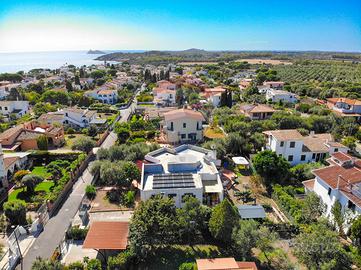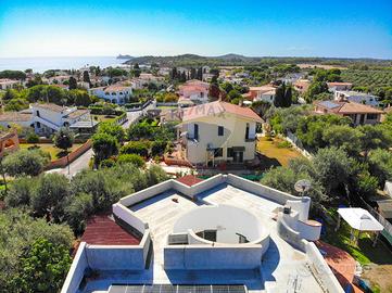 Arricchisce questa proprietà la presenza di un ampio loggiato che si affaccia su un giardino privato sui quattro lati con spazio per poter inserire una piscina e una terrazza panoramica sul mare.