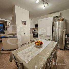 La villa è composta da 6 locali e 2 bagni, suddivisa su due livelli, con una distribuzione interna che permette di sfruttare al meglio ogni ambiente. All'ingresso, un accogliente soggiorno con angolo cottura con termocamino crea un'atmosfera calda e accogliente, perfetta per momenti di relax in famiglia o con gli amici.