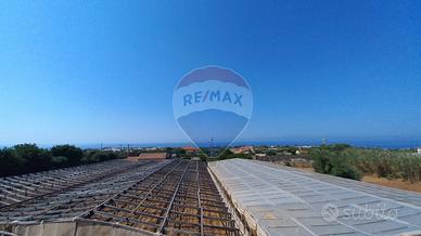 Al primo piano si sviluppa la parte abitativa che comprende un ingresso con adiacente cucina e ampio soggiorno con vista panoramica sul mare e la campagna circostante.