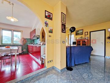Al piano terra ci accoglie un luminoso e ampio soggiorno con camino e cucina comunicante abitabile, una prima camera da letto matrimoniale ed infine un bagno finestrato con doccia;