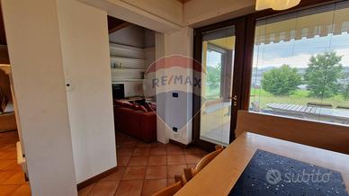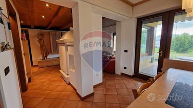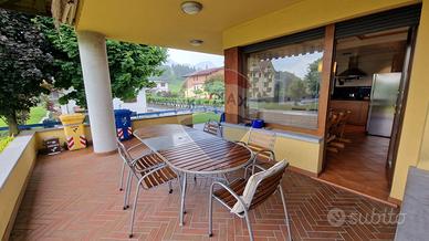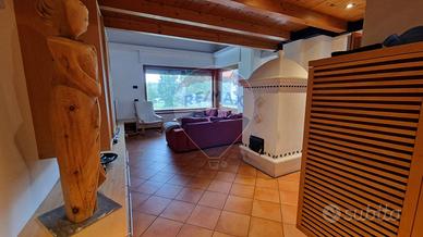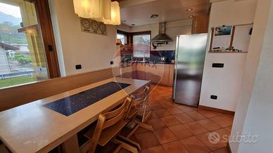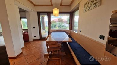 Ingresso a mezzo portoncino al PIANO TERRA RIALZATO, dove si trova la zona giorno, con ampio e luminoso soggiorno vetrato e cucinotto, STUBE a legna nel mezzo, veranda di 25mq con tavolo esterno per piacevoli pranzi estivi all'aperto o cene al tramonto (esposizione a sud), vano caldaia;