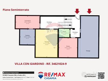 Scendendo un altro mezzo piano di scale si arriva a quello che a tutti gli effetti è il PIANO SEMINTERRATO, dove era stata prevista una grande taverna (attacchi di collegamento cucina esistenti) oggi usata come palestra, cantina e vano lavanderia/caldaia con accumulo.