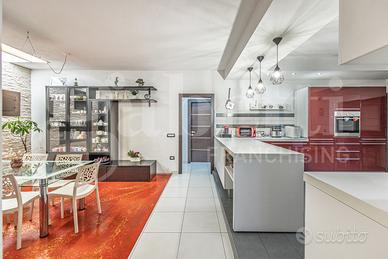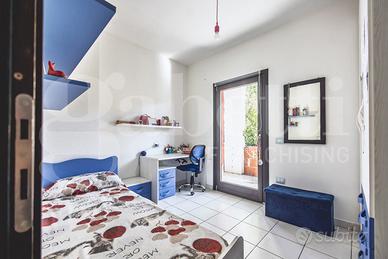 Il piano terra è composto da soggiorno con terrazzo a livello di oltre 33 mq, cucina abitabile con ampia dispensa, disimpegno, due camere singole, bagno e camera matrimoniale con bagno privato e veranda.