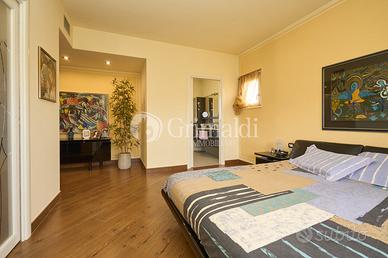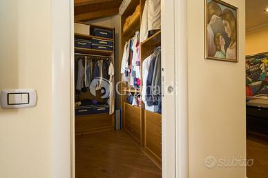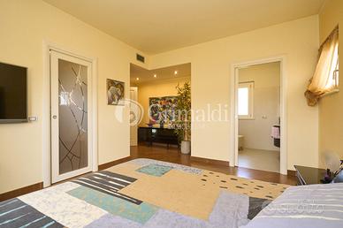 La camera matrimoniale occupa l'intera ala est del piano. Da un ingresso siamo accompagnati alla master room con cabina armadio e bagno padronale.