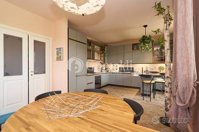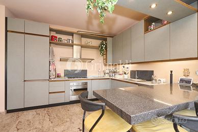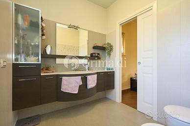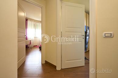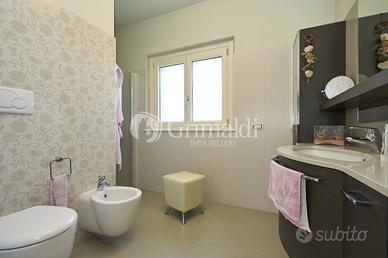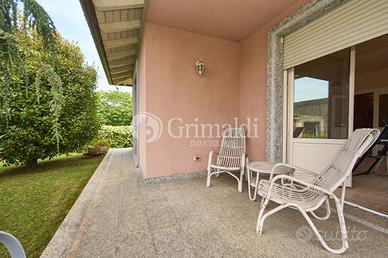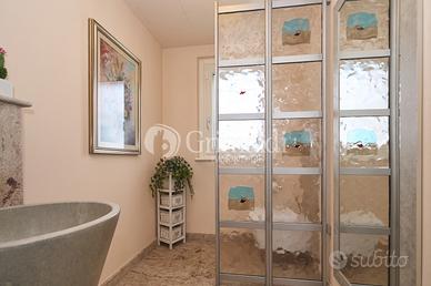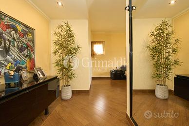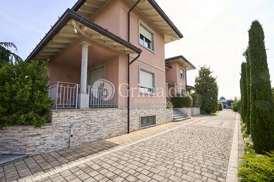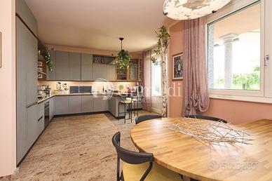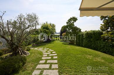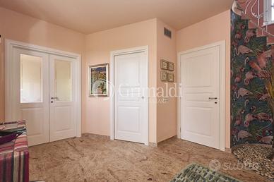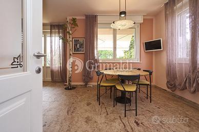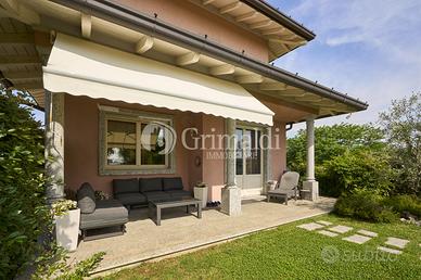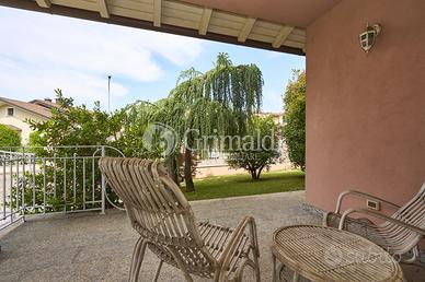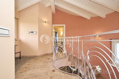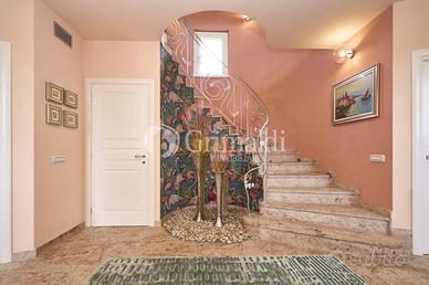 Un elegante ingresso, valorizzato da una scala elicoidale in ferro battuto, ci permette di accedere alla zona giorno che occupa l'intero piano terra dove troviamo un ampio e luminoso soggiorno, ideale per accogliere familiari e amici, e per trascorrere momenti di relax, una grande cucina abitabile, un bagno ospiti e un locale di servizio/guardaroba. Da tutti i locali del piano terra è possibile accedere ad un patio attrezzato, ideale per pranzi e cene all'aperto, circondato da alberi ad alto fusto che garantiscono privacy e ombra.