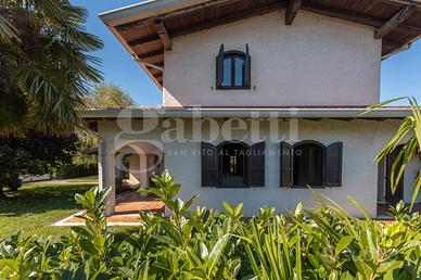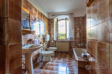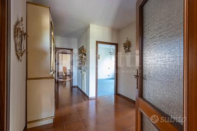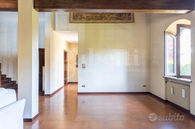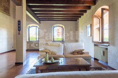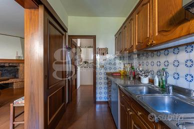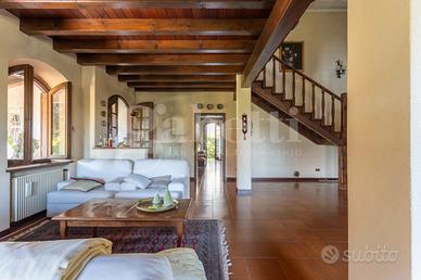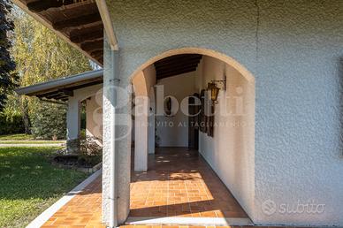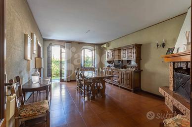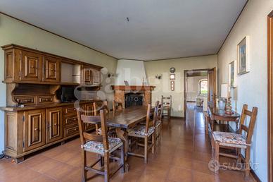 La superficie commerciale totale è di 285 mq che comprendono anche un garage, una cantina e un portico esterno di 55 mq con un barbecue in muratura.