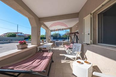 La villa sorge su un lotto di circa 1.000 mq con due piccoli giardini curati, doccia esterna, terrazzo pavimentato e una piscina 8x4 m in fase di completamento, che aggiunge ulteriore prestigio alla proprietà.