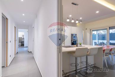 Ingresso su ampio e luminosa zona living, cucina moderna con penisola, perfetta per chi ama cucinare e vivere gli spazi in modo conviviale.