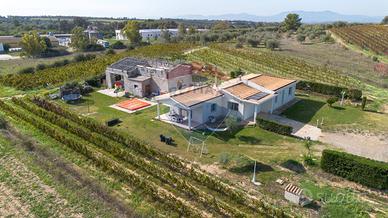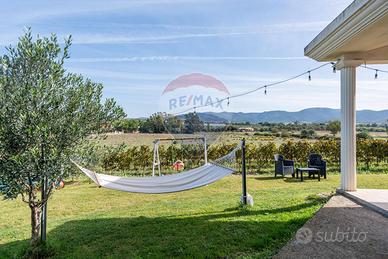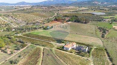 Completano la proprietà un ampio magazzino con destinazione d'uso D/10 da sfruttare per realizzare la cantina oppure come zona per riporre i vari attrezzi e mezzi agricoli, un giardino verde che circonda la proprietà e un ettaro di terreno a vigna 2500 ceppi impiantati nel 2020, come uvaggio abbiamo vermentino (ultima raccolta 60 quintali) inoltre è presente un impianto di irrigazione su tutto il terreno.