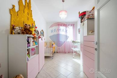 La villa tipologia quadrivano è composta da ampia zona living con angolo cottura a "L" e uscita nella veranda con porta scorrevole, disimpegno, bagno completo con doccia, camera matrimoniale con bagno e cabina armadio, due camere singole e comoda zona lavanderia finestrata.