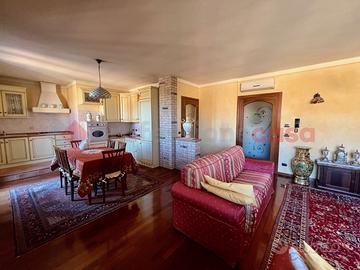 Salendo le scale rifinite in parquet si accede alla zona giorno composta da un luminoso salotto con camino funzionante, il cuore della casa, dove vivere momenti di condivisione e relax. La cucina a vista rende gli spazi moderni e conviviali.