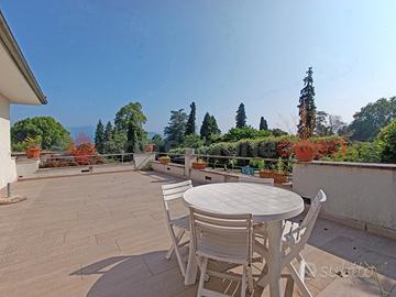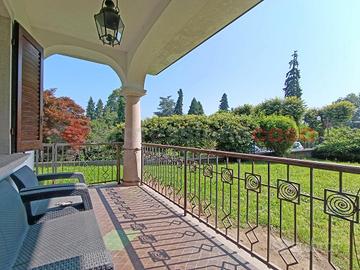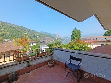 Il secondo appartamento invece è posto al primo piano e raggiungibile tramite una scala esterna con accesso indipendente; E' composto da una zona giorno luminosa con camino e accesso al portico, cucina abitabile con terrazzo vista lago, due camere da letto e due bagni di cui uno en-suite. Completa la proprietà un'ampia terrazza accessibile direttamente dal porticato, da un grazioso giardino pianeggiante, dove oltre ad alcuni posti auto, vi è la possibilità di realizzare una piscina, elemento che aumenterebbe ulteriormente il valore e il comfort della proprietà.