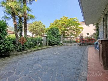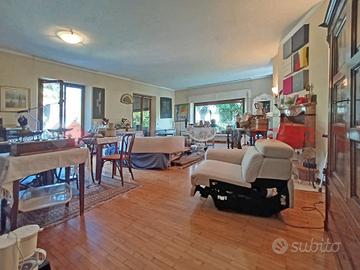Al piano terra, si sviluppa l'appartamento principale, ampio e luminoso con affaccio sul giardino; Composto da un elegante salone con porte finestre, una cucina abitabile con camino, tre camere da letto, uno studio e tre bagni. Al piano interrato si trovano diversi locali accessori, come cantina, lavanderia e spazi di servizio, oltre ad uno spazio ideale per gli ospiti, completo di saletta con angolo cottura, due camere da letto e un bagno, con ingresso indipendente a fianco al box doppio.