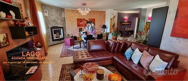Rif:(127609218) - Ci troviamo VICINO A ROMANO D'EZZELINO e più precisamente a SAN ZENO DI CASSOLA. Ciò che sto per proporle è un'ampia Villa Singola, indipendente, con esclusivo giardino di pertinenza. Il giardino, ben delimitato e ben curato, è fornito di irrigazione ed è piantumato con piante arbustive che garantiscono a chi abita la casa, privacy e riservatezza. Alla Proprietà vi si accede sia da un comodo passo carraio, dotato di antistante posto a parcheggio privato, che da un accesso pedonale posizionato centralmente alla facciata dell'abitazione, che mette subito in risalto, appena messo piede nella proprietà, le curate ed esclusive caratteristiche del fabbricato. L'ingresso all'abitazione, è preceduto da un antistante portico che lateralmente si amplia e sviluppa su due lati dell'abitazione a servizio del giardino e collegato alla cucina. Dall'ingresso si accede alla zona giorno, dove un ampio e luminoso salotto e pranzo con elegante caminetto, permette, appena entrati, di accogliere ospiti e amici. Adiacente all'ingresso troviamo la cucina, separata ed autonomamente utilizzabile rispetto al soggiorno, completa di mobili cucina e collegata direttamente all'adiacente portico. Un bagno a servizio degli ospiti completa la zona giorno. Dal reparto giorno, con pochi gradini, si accede al reparto notte, leggermente elevato rispetto al reparto giorno, composto da tre spaziose camere ed un ulteriore bagno completo di vasca e doccia. Dal reparto notte con una comoda scale si accede ad un terrazzo sul tetto, ottimamente utilizzabile come terrazza solarium. Dalla zona giorno, con scala interna si accede al piano interrato, dove scopriamo un grande locale ad uso taverna, un bagno, lavanderia Centrale termica e cantina. Completa l'abitazione una ampia autorimessa, con portone sezionale motorizzato e comoda rampa d'accesso esterna. Costruita nel 2000 e ri - Classe: E - IPE: 175.00 kWh/mq anno