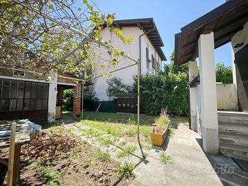 All'esterno troviamo un ampio giardino privato di circa 220 mq. oltre a box/magazzino, cantine e solaio/fienile sovrastanti.