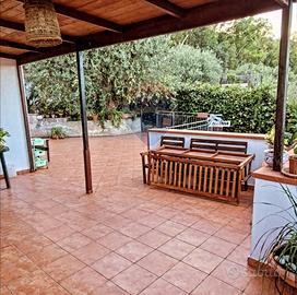 Termini Imerese, precisamente in contrada Bevuto-Rocca Rossa, proponiamo la vendita di una villetta unifamiliare, costruzione anni novanta, di 105 metri quadri circa così composta: al pianterreno di 70 metri quadri circa troviamo la zona notte ,due camere da letto ognuno dotata del proprio bagno; annesso un magazzino di circa 8 metri quadri che può benissimo fungere da ripostiglio. Una scala esterna conduce al primo piano di circa 35 metri quadri dove troviamo la zona giorno: cucina, piccolo soggiorno, bagno, il tutto illuminato da un ampio terrazzo, 200 metri circa, da cui godere della vista panoramica sulla costa termitana e del monte san Calogero, e dove godere nelle calde sere estive della piacevole aura. Possibilità di realizzarvi barbecue ed allestirvi forno a legna, altresì presente uno spiazzo dove poter costruire una piscina. Insieme alla casa Remax propone la vendita del terreno annesso, 3463 metri circa, di cui la metà con alberi di ulivo secolari, 3 alberi di gelsi, 1 albero di zorbe circonda la costruzione. Per trattenere il terreno in modo affidabile, conferendo stabilità e solidità troviamo due mura di contenimento in cemento armato. Gli altri 1800 metri circa di terreno li troviamo al di là della stradella che conduce all'abitazione. Si tratta di terreno recintato con alberi di ulivo, fichi, fichi di India; il terreno in pendio è sistemato da una serie di ripiani ( terrazzi ) ciascuno sostenuto da una scarpata erbosa dove poter coltivare, qualora si volesse, degli ortaggi. Al centro un prefabbricato in lamiera dove riporre gli attrezzi da lavoro e il raccolto. La casa gode di tutti i servizi, linea telefonica, servizio elettrico ed è dotata di una cisterna di 30 mila litri d'acqua provenienti dalla diga di Caccamo con cui potere irrigare ed un recipiente di diecimila litri di acqua forniti dal comune della città di Termini Imerese. Troviamo anche una compostiera da giardino che oltre l' indubbio...