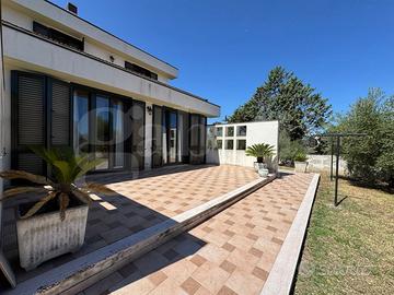Nei pressi del nuovo ospedale proponiamo una bellissima villa singola, imponente nelle dimensioni e curata nei dettagli, circondata da un ampio parco privato di circa 1.730 mq.