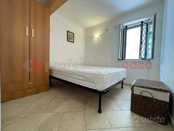 L'interno della villa dispone di una cucina abitabile con ingresso anche dall'esterno, un bagno con doccia, un soggiorno e due camere da letto di cui una con vista mare.