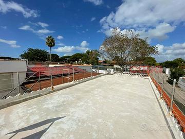 La terrazza panoramica raggiungibile da una scala esterna misura 40 mq. e offre una vista mozzafiato sul mare.