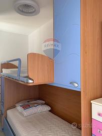 Al piano terra troviamo una luminosa cucina abitabile, un servizio con doccia, un ripostiglio e un ampio salone con vetrata a due ante. Una scala interna conduce al primo piano, composto da: tre camere da letto, un secondo servizio con doccia e un terrazzo panoramico.