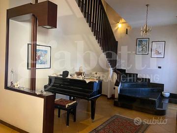 Teverola - via Manzoni - centralissima soluzione indipendente composta da autorimessa al piano seminterrato di circa 40 mq., appartamento su due livelli : piano rialzato di circa 135 mq. adibito a zona giorno e piano primo di circa 135 mq. a zona notte. Terrazzo al primo piano e ampio spazio esterno di proprietà esclusiva.
