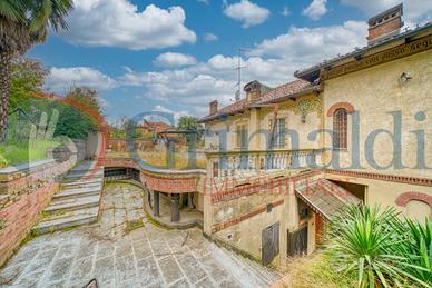 Storica dimora del 1902 in Art Nouveau (Arch. Sgarbi) splendidamente ampliata nel 1924 in puro stile eclettico dal famoso architetto Thermignon. La villa urbana, comodissima ai servizi, è circondata da terrazzi, cortili e giardini piantumati per un totale di 1.850 mq catastali e si sviluppa principalmente sul piano rialzato/primo, destinato a grandi sale contigue di soggiorno, pranzo, cucina, studi e zone di rappresentanza; il piano sovrastante notte è composto di una grande suite padronale con bagno e zona armadi, di altre tre camere e bagno; completa la proprietà un'ampia mansarda collegata con scala comoda, composta di due grandi locali, un bagno, due depositi; nella mansarda sono presenti una finestra angolare, due abbaini ed altre due finestre; infine, al piano seminterrato sono presenti un alloggio custode, l'autorimessa e vari locali cantinati. La casa è molto apprezzata per la facciata più antica decorata con delicati motivi floreali "liberty" in ammirevole contrappasso con il successivo "modernismo" dell'ampliamento in stile eclettico "Coppedè". La bellissima meridiana dipinta con il motto "Nullas numero nisi serenas" (... Conto solo le ore serene) compare sulla facciata del 1924 in adiacenza alla facciata liberty del 1902 e pare ammorbidire l'apparente contrasto di due bellissimi e diversi stili architettonici entrambi interpretati dai migliori autori. Il quadrante solare utilizza ore francesi prive di numerazione, tracciate su una finta tenda posta su una finta finestra e non ha funzione di misurazione del tempo ma semplicemente decorativa e artistica. La costruzione è stata realizzata con murature portanti in mattoni cotti e, soprattutto nella zona edificata nel 1924, con i primi solai in latero cemento, per cui si presta ad eventuali modifiche distributive. molte pareti sono ricoperte internamente di boiseries in legno pregiato con funzione isolante e di mascheratura delle invisibili grate scorrevoli di sicurezza, Si tratt