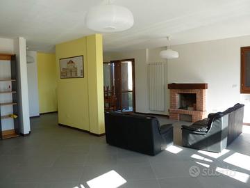 Villa immersa nel verde, composta da autorimessa con tre posti auto e dispositivo per ricarica auto elettriche. Tavernetta e lavanderia. Al piano terra :salone con camino e vista sulla valle ,camera da letto, cucina abitabile da cui si accede al barbecue esterno coperto con tettoia. Con la scala interna si accede al piano mansardato composto da tre ambienti finestrati. Spese di gestione contenute grazie all'impianto fotovoltaico, impianto termico di recentissima installazione di tipo ibrido con pompa di calore. Giardino esterno con vista sulla valle che circonda la casa su tre lati. Semiarredato ,volendo con cucina .