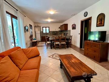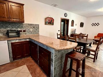 La casa si apre in un grande open space, con cucina in muratura e zona pranzo-soggiorno, ideale per accogliere amici e famiglia.