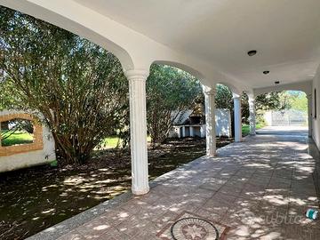 All'esterno, le ampie verande coperte di oltre 60 mq avvolgono due lati della casa, sostenute da pilastri massicci che donano un'atmosfera unica. Non mancano un ripostiglio per gli attrezzi, un secondo accesso carrabile e la possibilità di parcheggiare vicino alla villa.