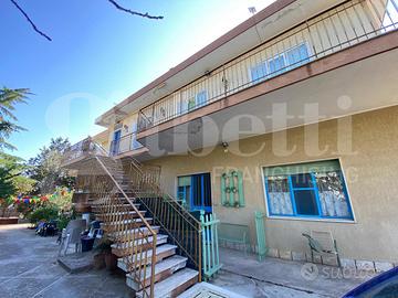 Al primo piano si sviluppa l'abitazione principale di circa 145 mq, caratterizzata da un ampio ingresso su disimpegno, salone luminoso, cucina abitabile, studio, tre camere da letto e due bagni, perfetta per una famiglia numerosa o per chi desidera grandi spazi da personalizzare.