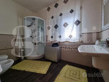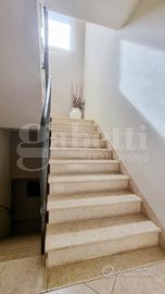 Il piano terra accoglie gli ospiti con un luminoso soggiorno doppio, impreziosito da un termo-camino che crea un'atmosfera calda e accogliente. La cucina è completata da una lavanderia, che rende questo ambiente perfetto per la vita quotidiana. A servizio della zona giorno, un ampio bagno padronale.